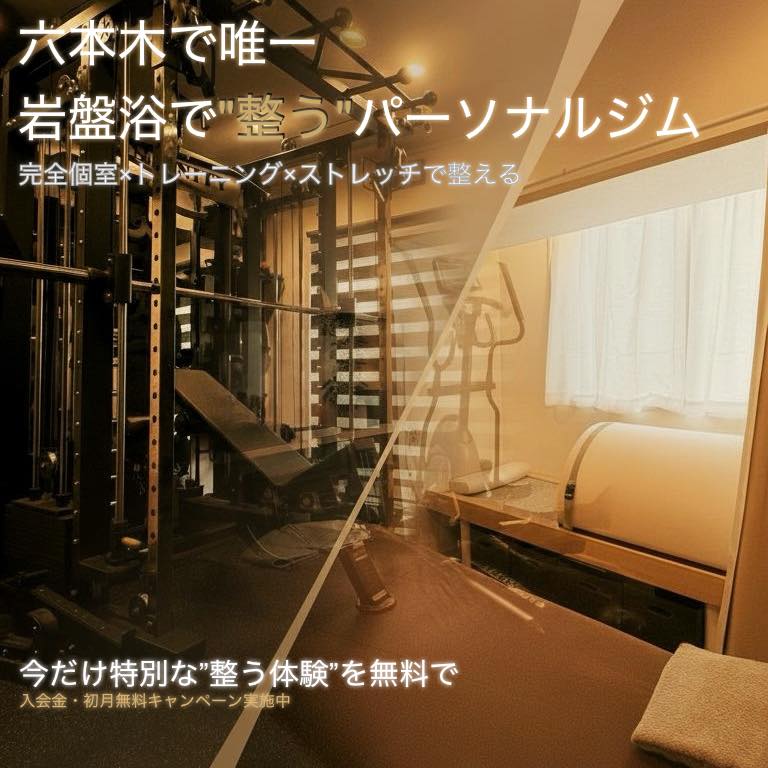 仕事も、身体も、整う場所。 六本木で唯一── 岩盤浴 × パーソナルトレーニング × ストレッチで “整う”を体感できるジム、PLEASURE GYM。 ただ鍛えるだけじゃない、 内側から温めて、動けるカラダへ。 今だけ【入会金・初月無料キャンペーン】実施中。 完全個室のプライベート空間で、 あなたの「本質的な健康」を整えてみませんか。 ────── 📍 六本木駅 徒歩3分 🕖 朝7時から通える 🧖‍♂️ 岩盤浴 × トレーニング × ストレッチ 💬 体験予約はプロフィールのリンクから #六本木パーソナルジム #整う習慣 #岩盤浴トレーニング #完全個室ジム #大人の健康習慣 #機能改善トレーニング #パーソナルトレーニング六本木 #朝活ジム #本質的な健康 #整える時間 #ボディメイク #姿勢改善 #疲労回復 #ストレッチ #プレジャージム